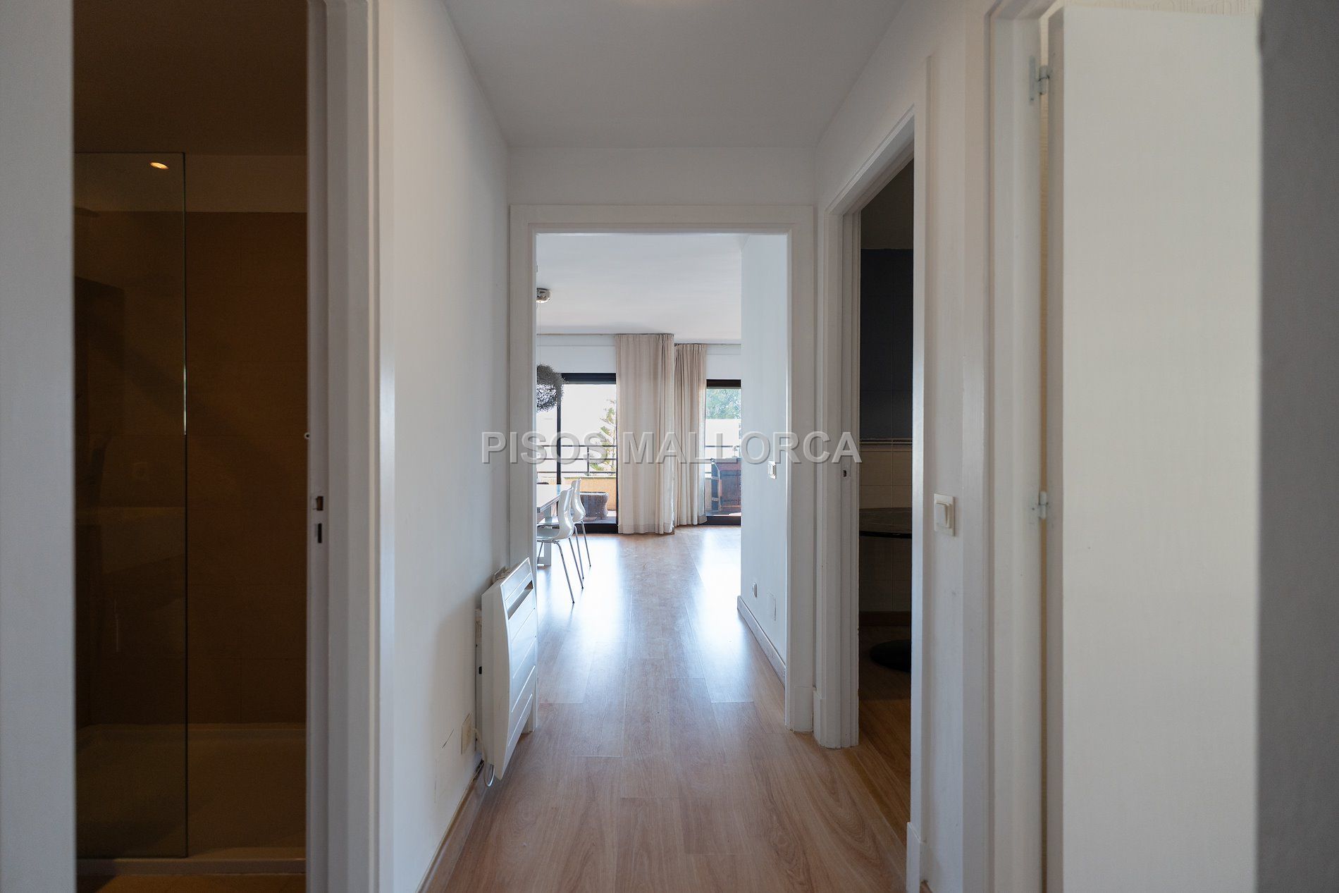 El piso cuenta con dos dormitorios dobles con armarios empotrados. El dormitorio principal dispone de baño en suite con bañera, mientras que el segundo baño, incluye un plato de ducha. Ambos dormitorios tienen salida a un balcón lateral orientado al sur.