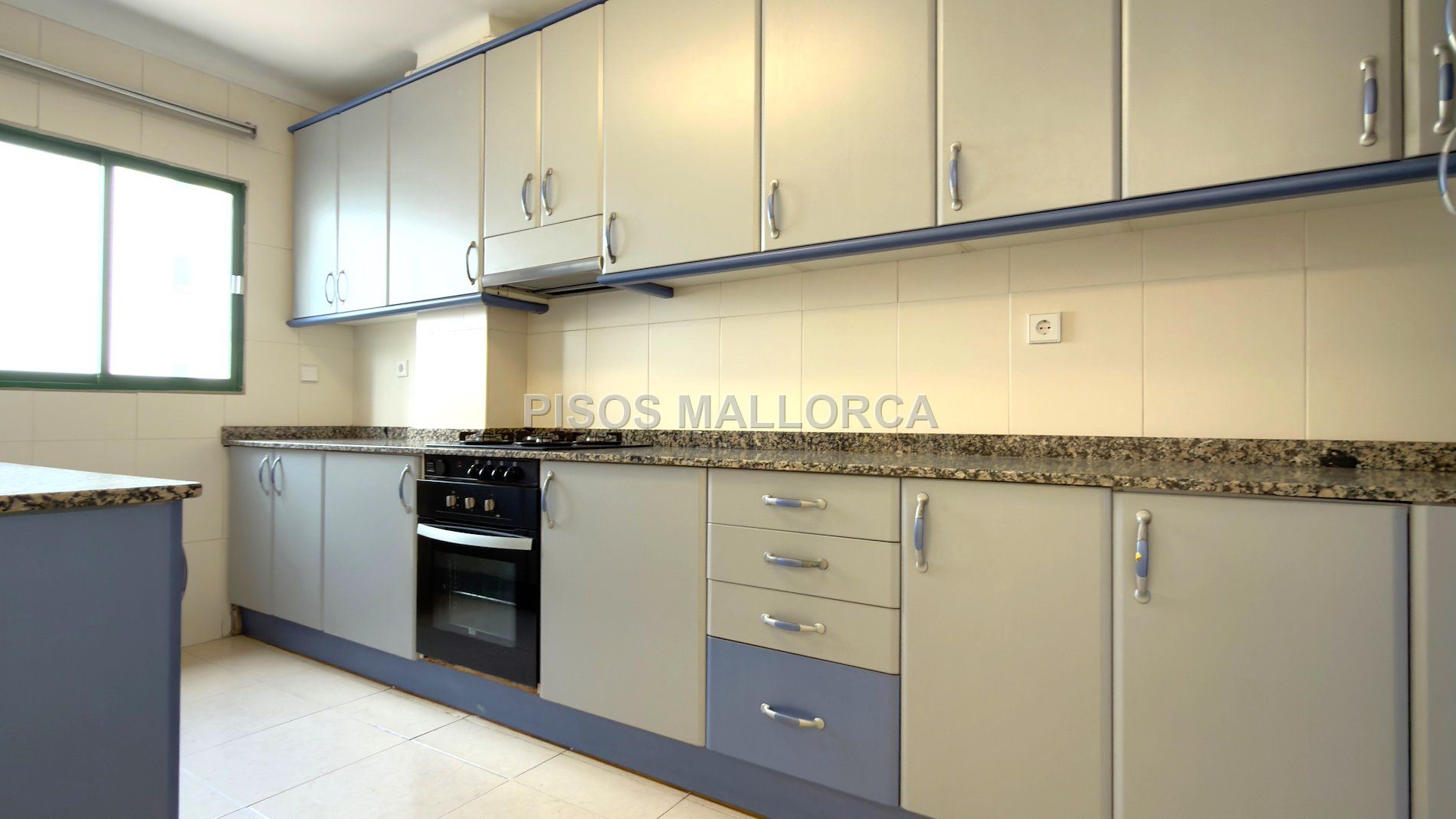 Se alquila este luminoso y espacioso piso de 165 m² sin amueblar en la zona de Bons Aires, ubicado a escasos pasos del Colegio Lluís Vives. La propiedad destaca por su amplitud y una distribución equilibrada.